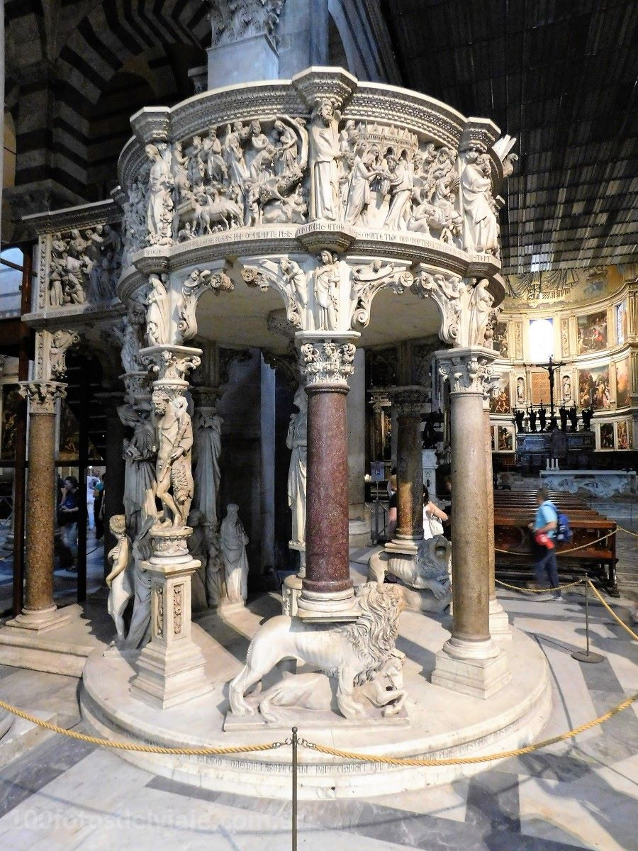 Con 5 naves, en su interior te llamarán la atención el gran mosaico del ábside de la catedral, el artesonado del techo de la nave central y, sobre todo, el enorme púlpìto con una gran decoración, el cual realizó Giovanni Pisano en 1310.