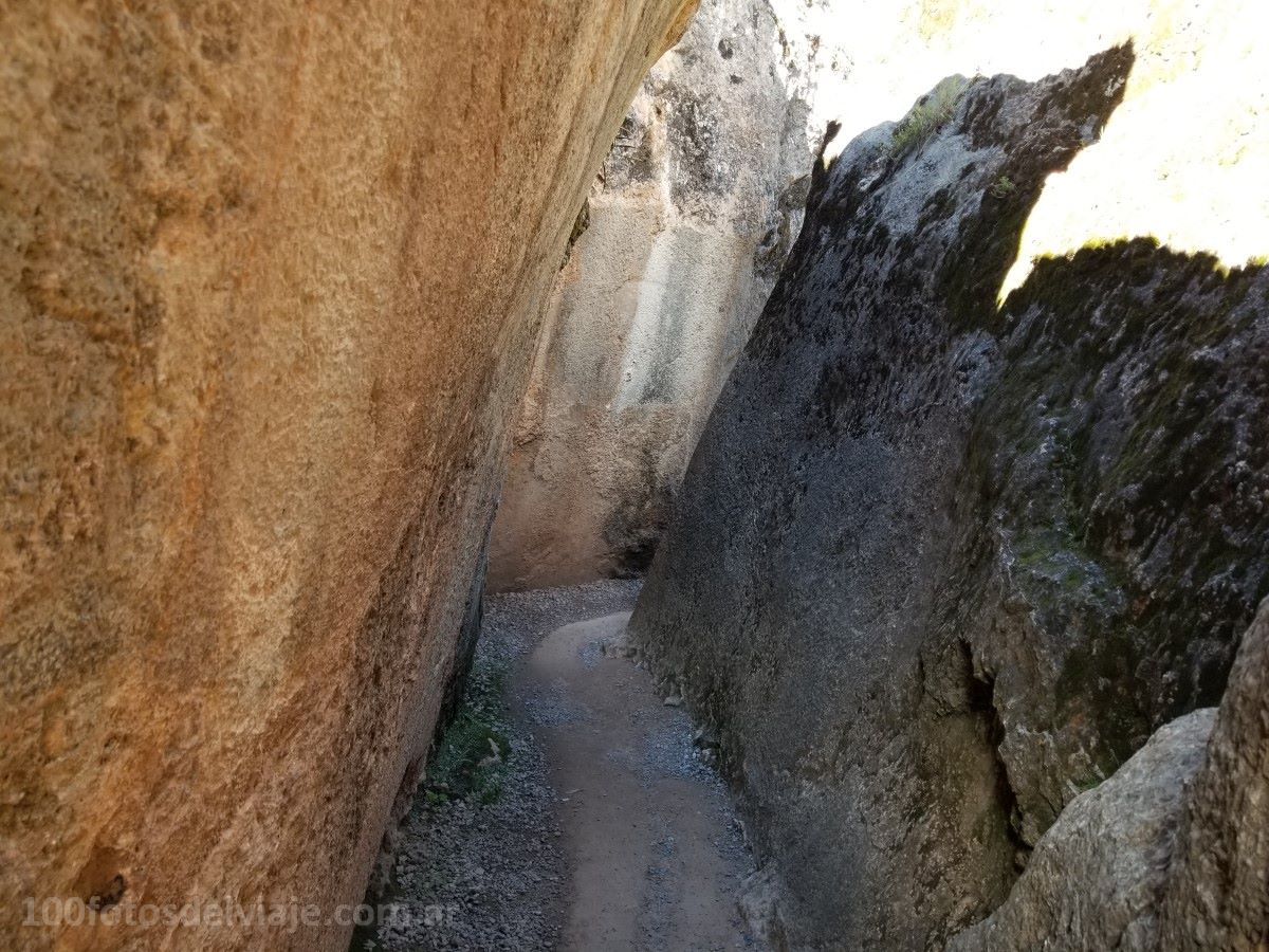 El Sitio Arqueológico de Qenqo está dividido en 2 grupos, según los caminos que conducen a él: el camino chico y el camino grande. El chico cruza una ladera del cerro Socorro y el grande o más largo se encuentra al pie del cerro y conduce de Sacsayhuamán a Pisac. Qenqo grande abarca la mayoría de las actuales construcciones turísticas como las galerías subterráneas y es el más interesante, ya que todavía tiene muchos restos de las construcciones que se levantaban allí; en cambio, Qenqo Chico fue casi totalmente destruido y sólo quedan algunos muros y rocas labradas.